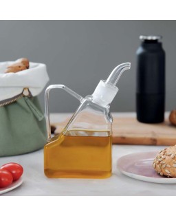 L'innovativo design a tanica rende questa oliera perfetta sia per l'uso quotidiano che per servire olio e aceto con eleganza durante le occasioni speciali. Grazie alla trasparenza del vetro borosilicato, puoi controllare facilmente il contenuto e la quantità rimanente.