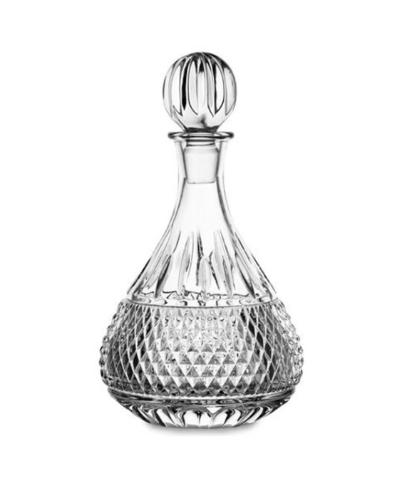 Elegante bottiglia realizzata in vetro con tappo sempre in vetro, ha una capacità di 1 litro. Caratterizzata da un design classico con i suoi dettagli romboidali. Solitamente viene scelta in abbinamento al set da 6 bicchieri della stessa linea KARA della Fade Maison.