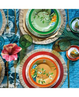 Servizio piatti Fade Parrot in porcellana 12 pezzi con colori assortiti. Design moderno e vivace, perfetto per una tavola originale.