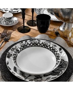 Servizio piatti 18 pezzi Fade Armonia Nero in porcellana elegante. Design floreale raffinato per una tavola moderna e di grande impatto.