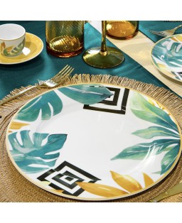 Porta in tavola un tocco di natura con il servizio piatti Palm da 18 pezzi di Fade. Realizzato in raffinata porcellana, è perfetto per chi cerca un design tropicale ma elegante.