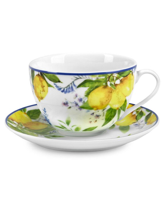 Set da 2 tazze con piattino in porcellana da 370 ml della linea Paradise di Fade Maison.