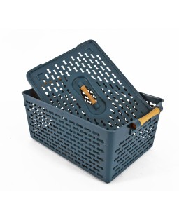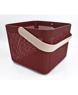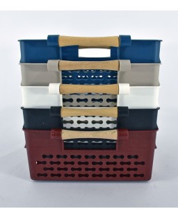 Pratico cesto contenitore in eco-plastik con maniglia, dispnibile in diverse colorazioni. Può essere utilizzata per riporre oggetti o come organizer da bagno per accessori e cosmetici oppure come contenitore da cucina per accessori e spezie. Le sue dimensioni compatte lo rendono perfetto per chi ha poco spazio. Dimensioni 23,5x23,5xH18,50 cm.