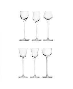Set composto da 6 calici per liquore dalle fome assortite 60 ml in vetro trasparente modello Martha 2.0 della Fade Maison.
